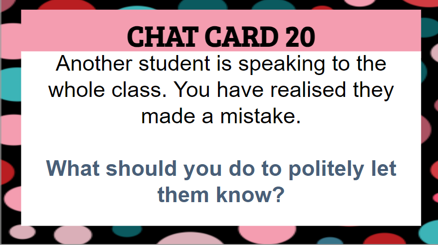 Access the editable chat cards here to tailor them to your needs and the needs of your students.