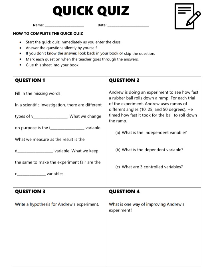 - Use the knowledge organiser to develop low-stakes quizzes. Students can also use the knowledge organiser to quiz each other.
